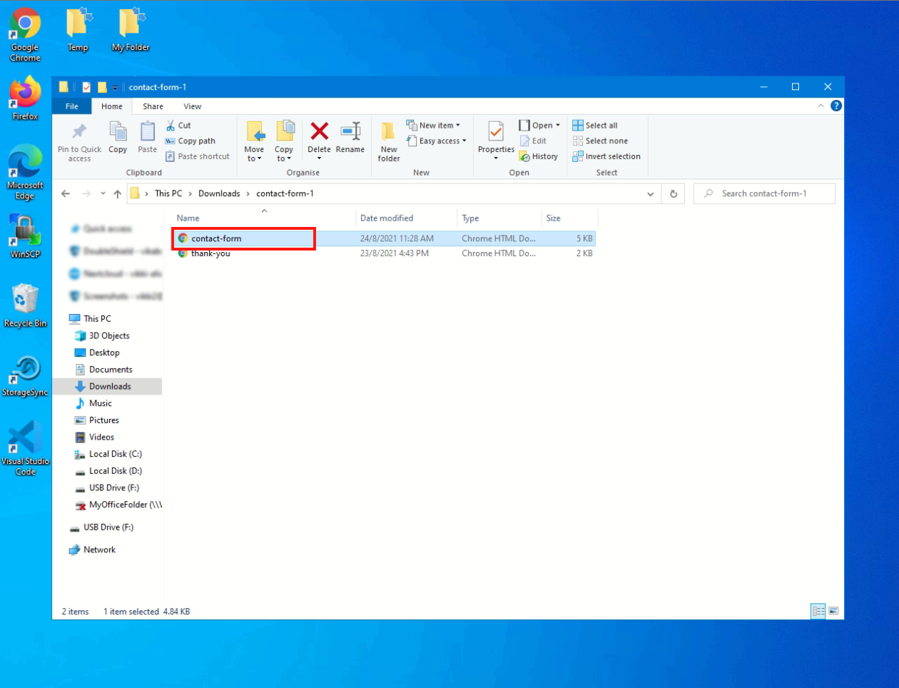 The contact form will be downloaded in .zip file format. Extract this zipped file.