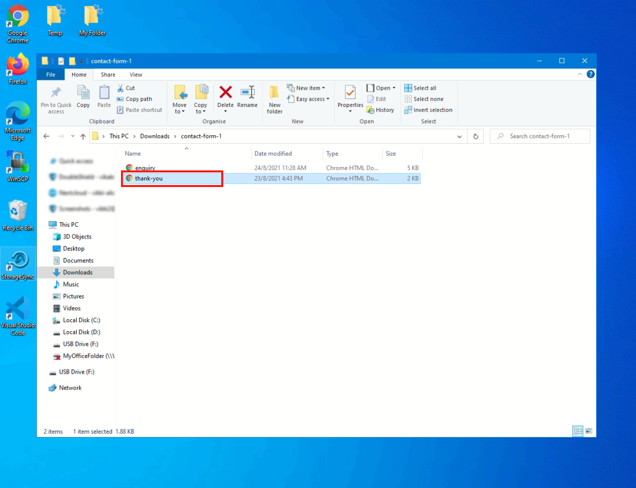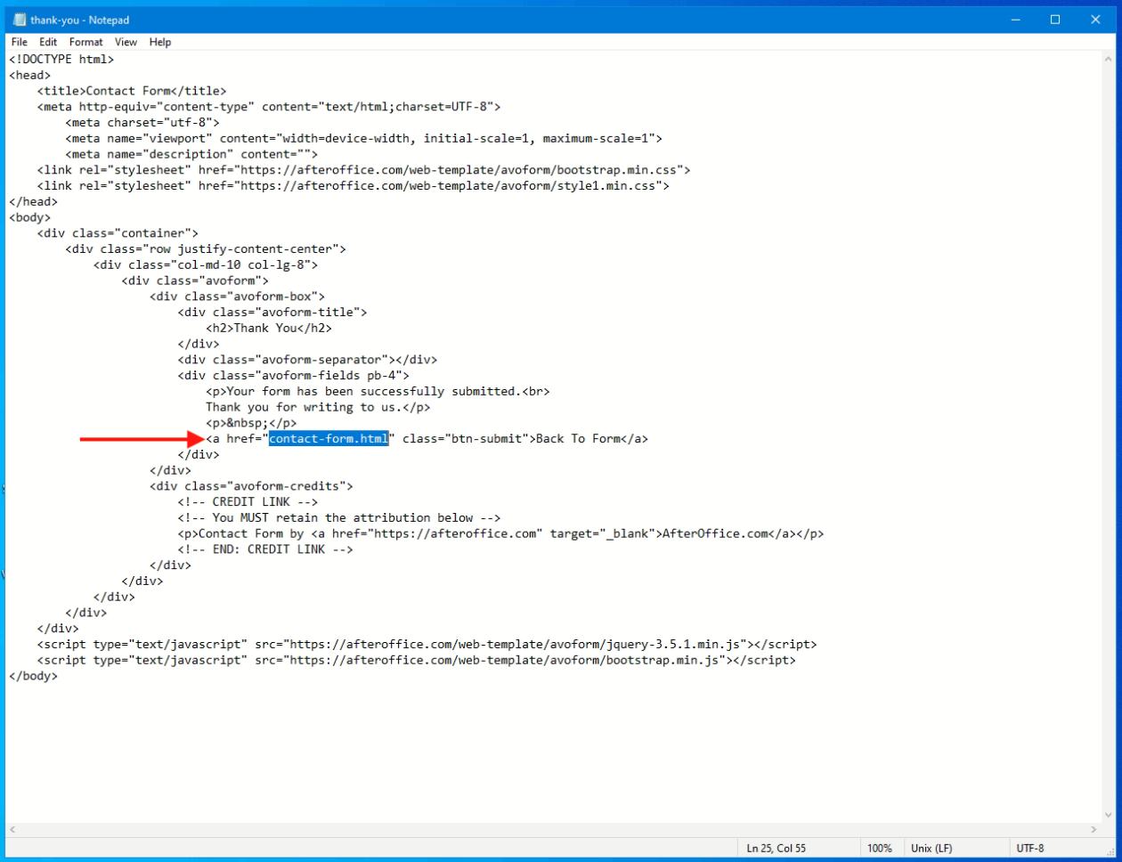 Next, open the thank-you.html file (with a HTML editor or Notepad).