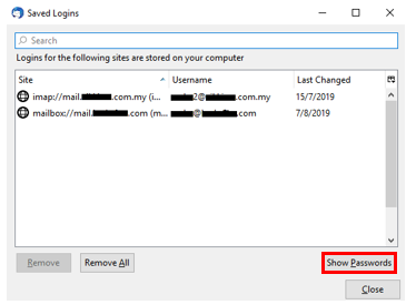 4.A box will appear that says Are you sure you wish to show your passwords? Press Yes.