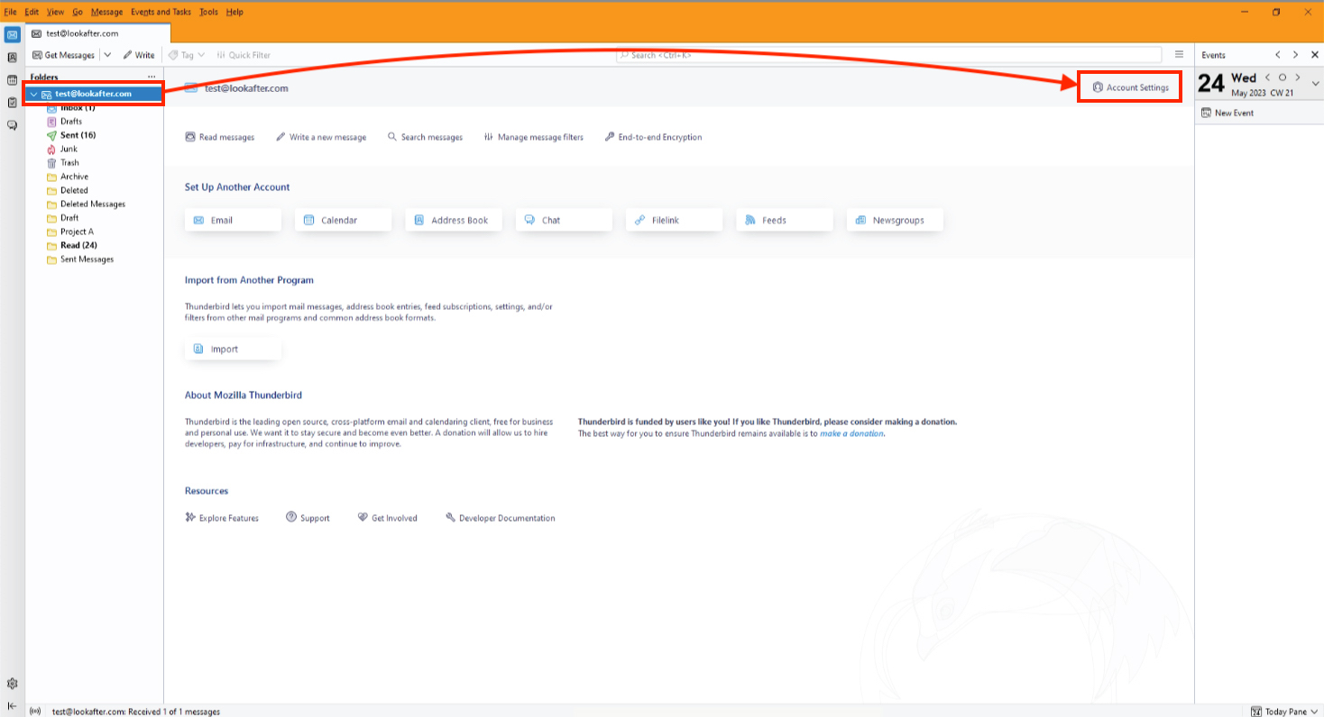 1. On Thunderbird, click your email account on the Folders pane, then click Account Settings.
