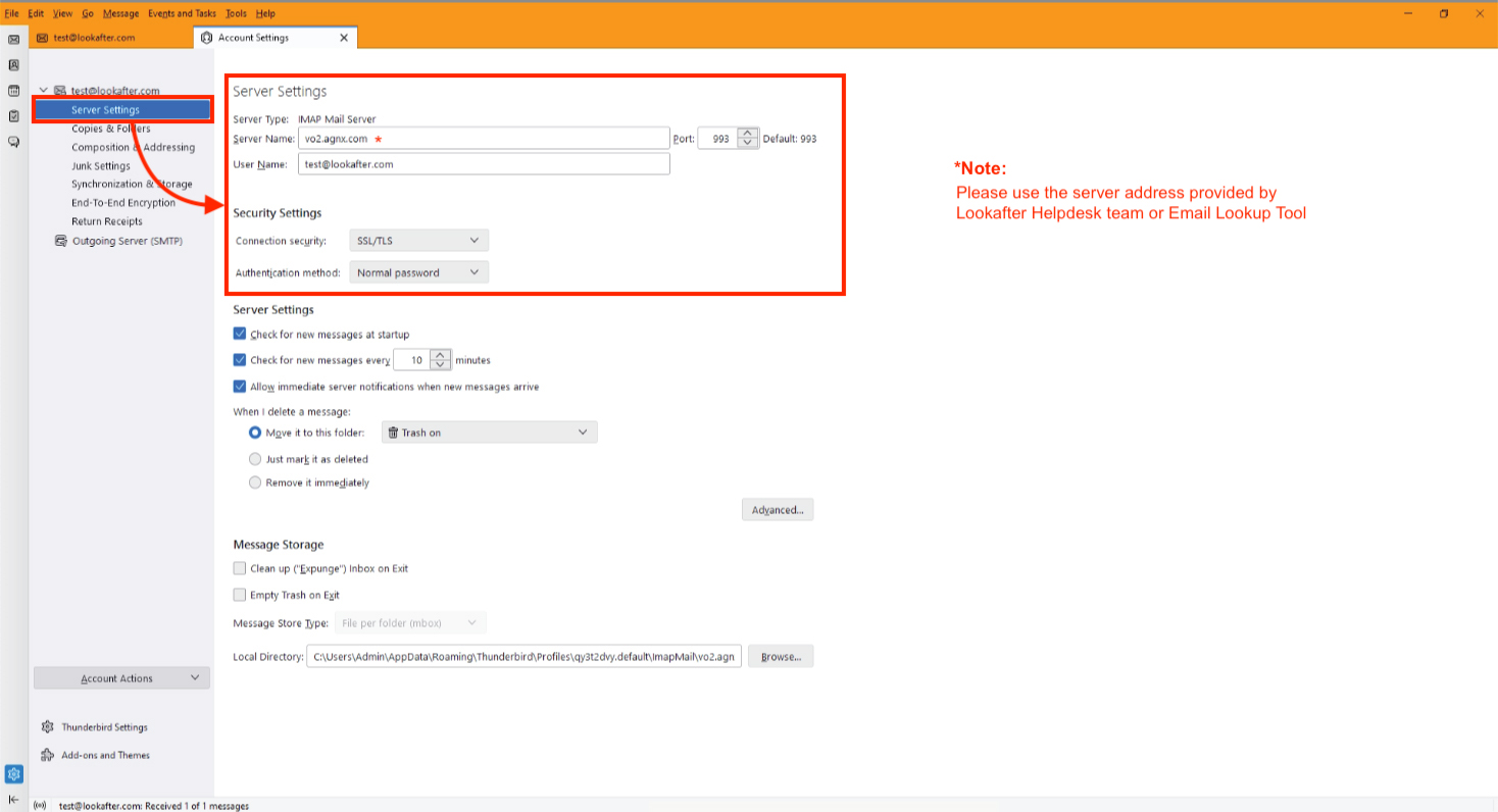 To check if your IMAP setting is correct on your Mozilla Thunderbird, please follow through the following steps: