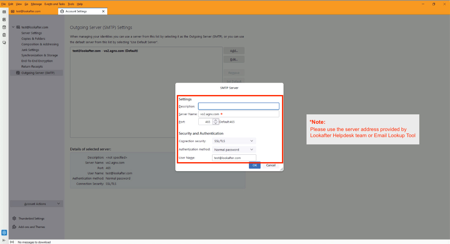 | Server Name: | vo1.agnx.com / vo2.agnx.com / g1.agnx.com IMPORTANT: To confirm which server to be used for your domain, please use the Email Lookup Tool or consult Lookafter Helpdesk. |