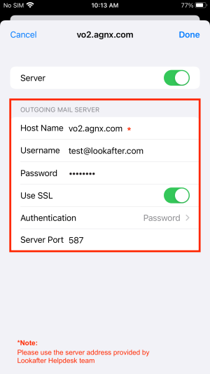 | Host Name | vo1.agnx.com / vo2.agnx.com / g1.agnx.com IMPORTANT: Please consult Lookafter Helpdesk to confirm which server to be used for your domain. |
