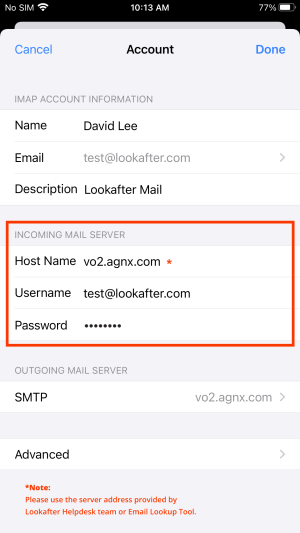 | Host Name | vo1.agnx.com / vo2.agnx.com / g1.agnx.com IMPORTANT: Please consult Lookafter Helpdesk to confirm which server to be used for your domain. |