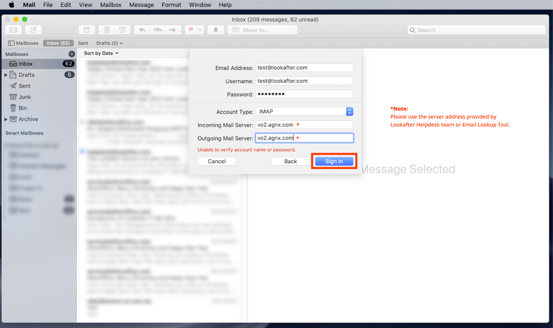 IMPORTANT: To confirm which server to be used for your domain, please use the Email Lookup Tool or consult Lookafter Helpdesk.