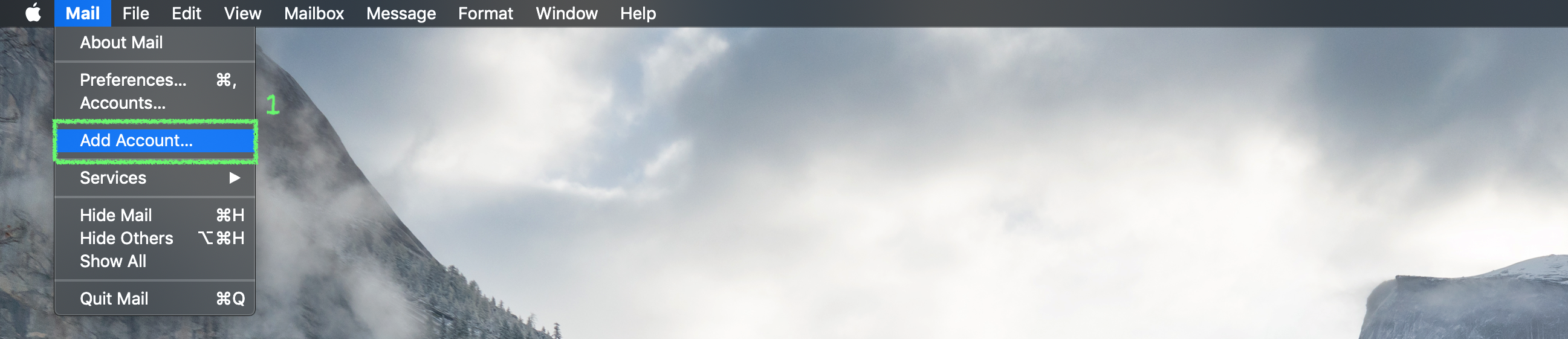 1. On your Apple Mail, and click on Mail > Add Account….