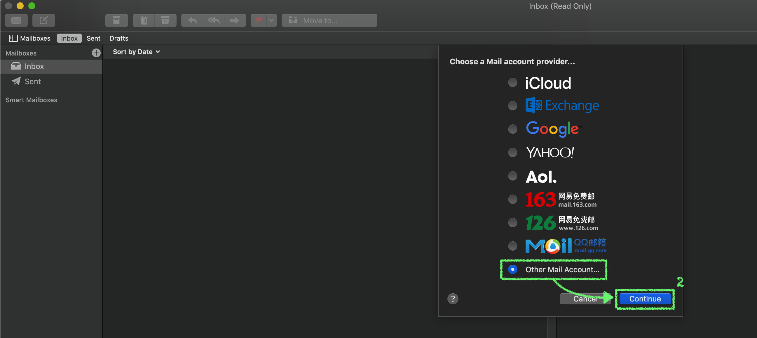 2. Select Other Mail Account…, then click Continue.