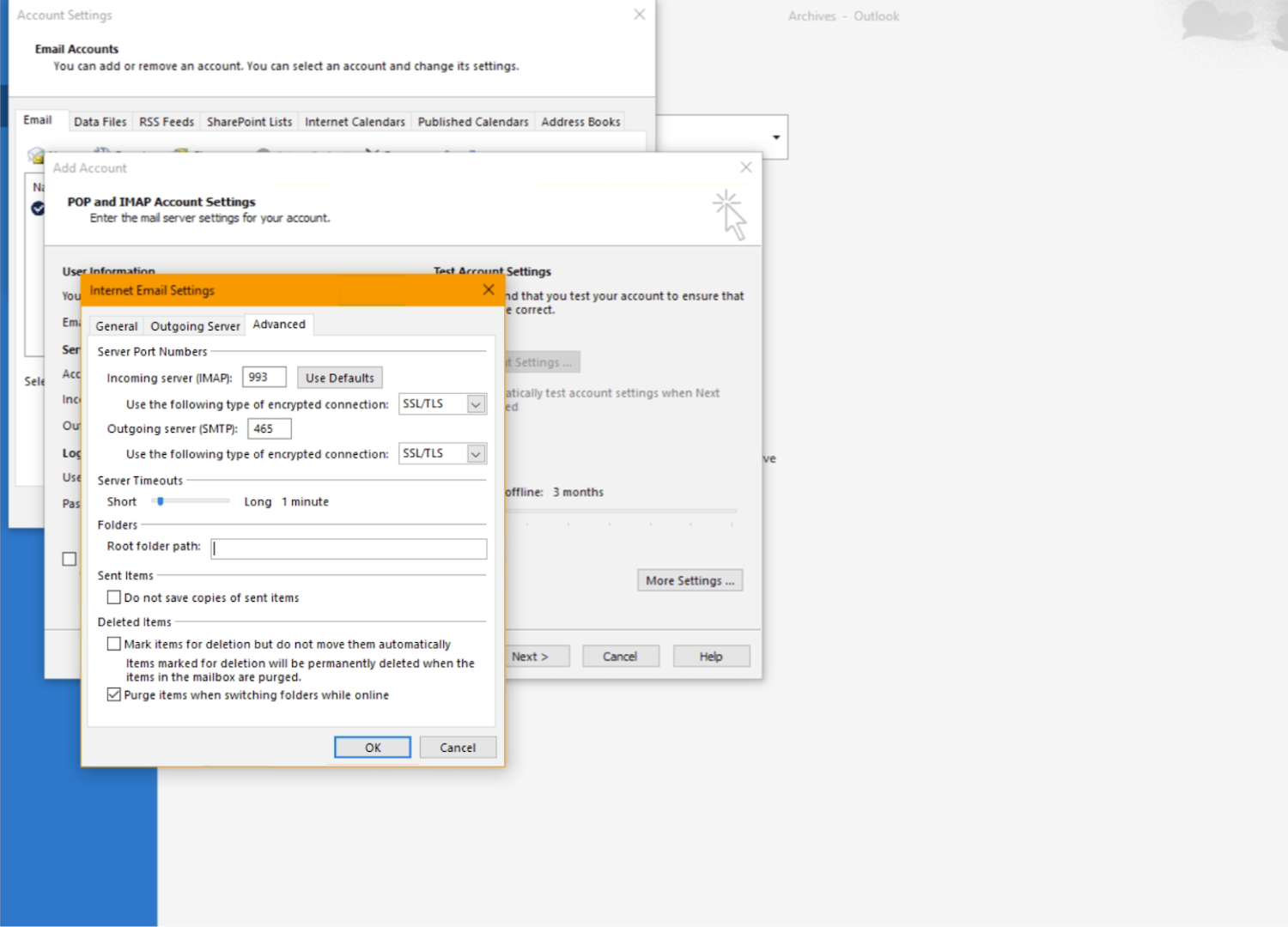 Home > FAQ > Email > Email Clients & Mobile > Mail Setup Guides for Desktop PC/Laptop > Setting Up IMAP in Microsoft Outlook (Manual Setup)