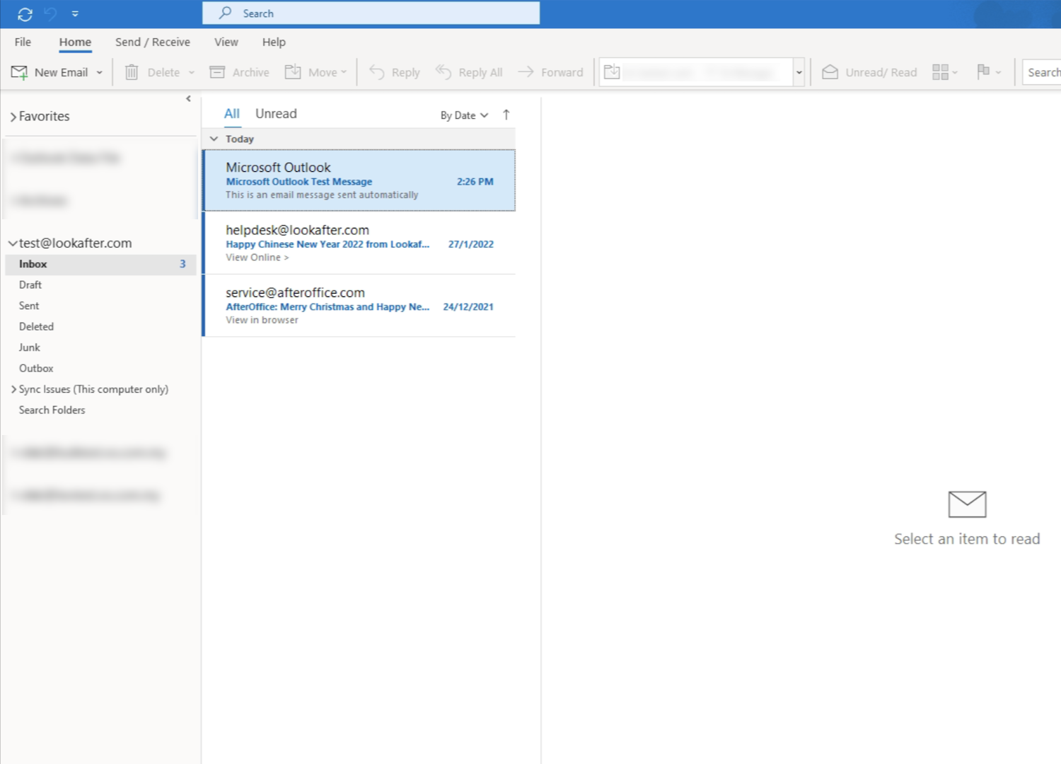 By default, Ms Outlook will only synchronize the Inbox and Sent mailbox. If you want to access emails from other mail folders (e.g. Read, Junk or custom folders) on your Ms Outlook, find out how you can do so at Choose Specific IMAP Folders from Webmail to Appear on Ms Outlook.