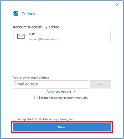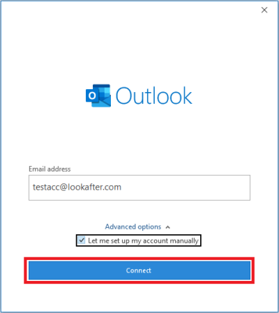 2. Fill in your email address. Click on Advanced options and select Let me set up my account manually. Then, proceed with [Connect].