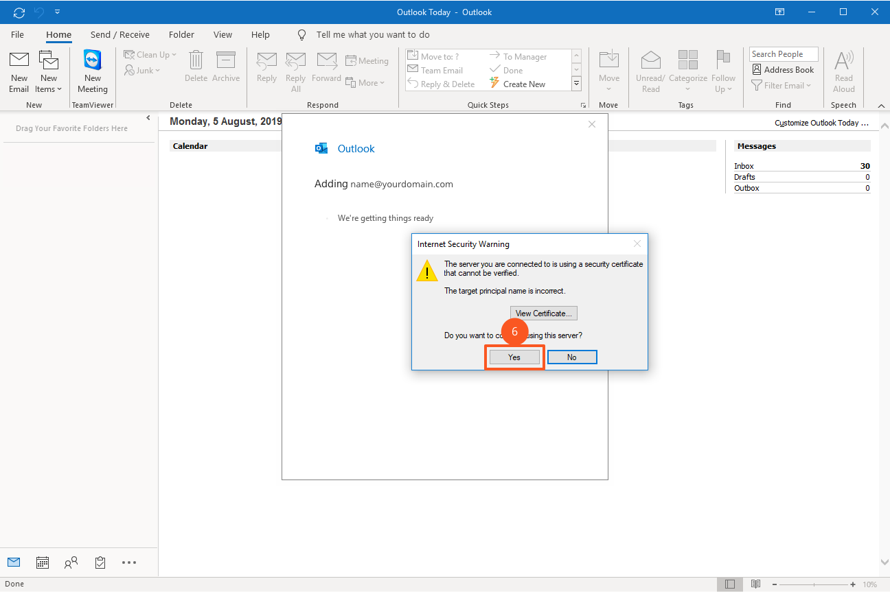 *Note: The warning is displayed due to each secure certificate has to be verified against the server name that you connect to. If you connect to mail.yourdomain.com, your mail application will warn you as the certificate belongs to someone else like *.agnx.com. You can safely accept the certificate that is coming from agnx.com as it is AfterOffice Global Network Exchange domain.
