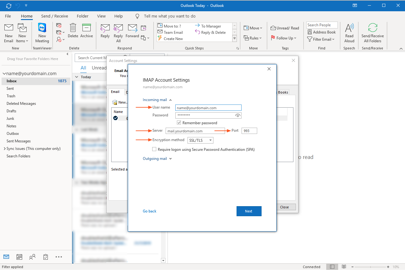 | Server | mail.yourdomain.com OR imap.yourdomain.com (where yourdomain.com is your actual domain) |