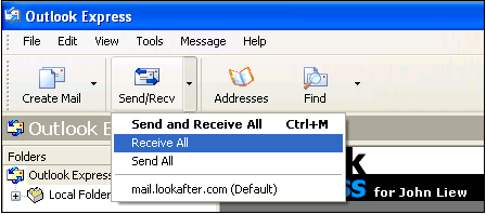 Outlook Express is ready now. Click “Send/Recv” to start downloading email from the mail server: