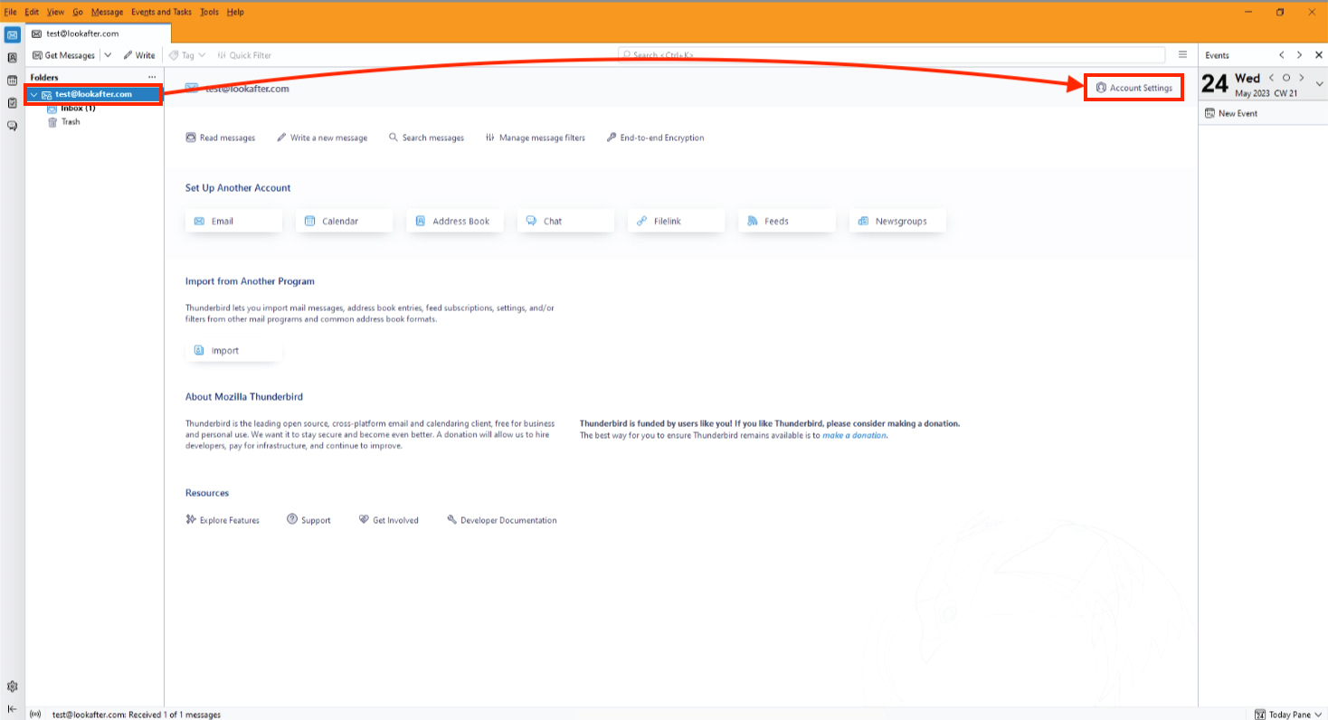 1. On your Thunderbird, click your email account on the Folders panel, then select Account Settings.