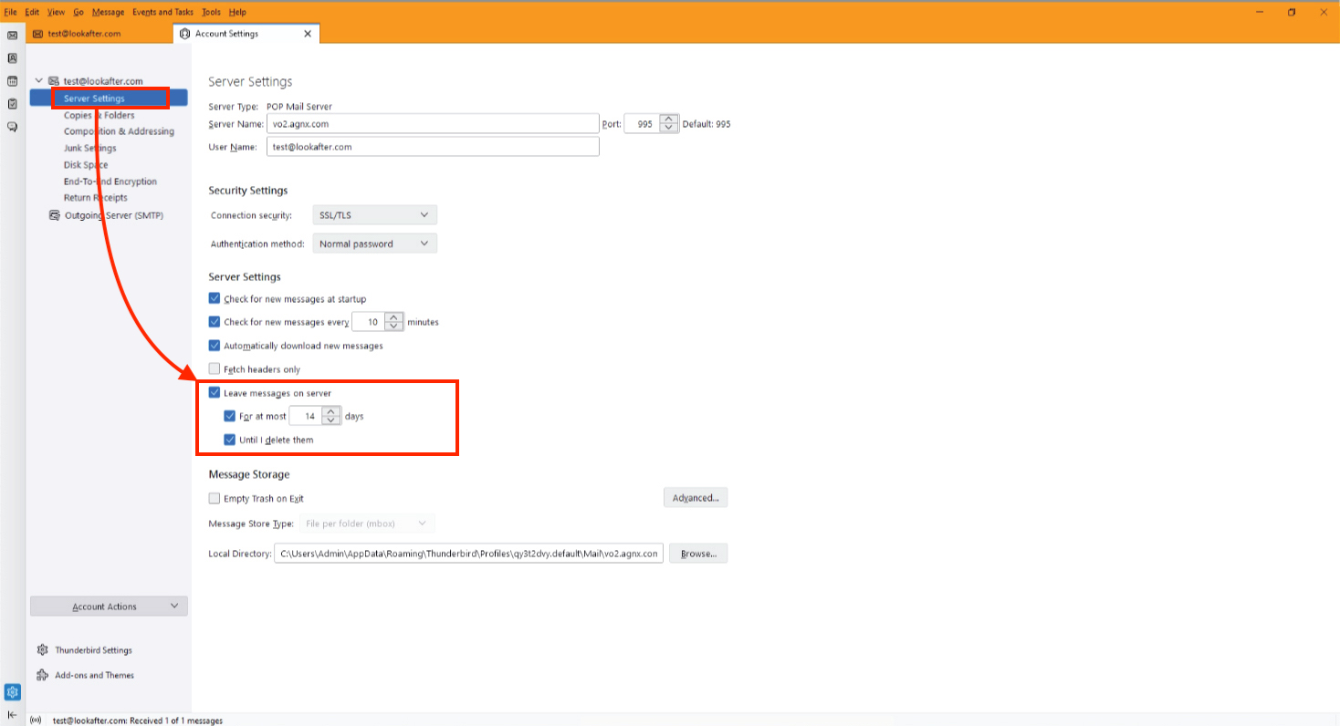 Mozilla Thunderbird (POP3): Configuring How Much Days Emails are Kept on Server