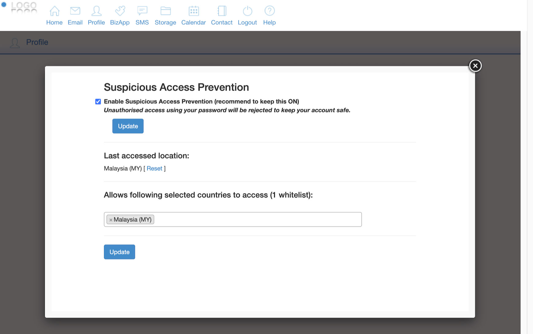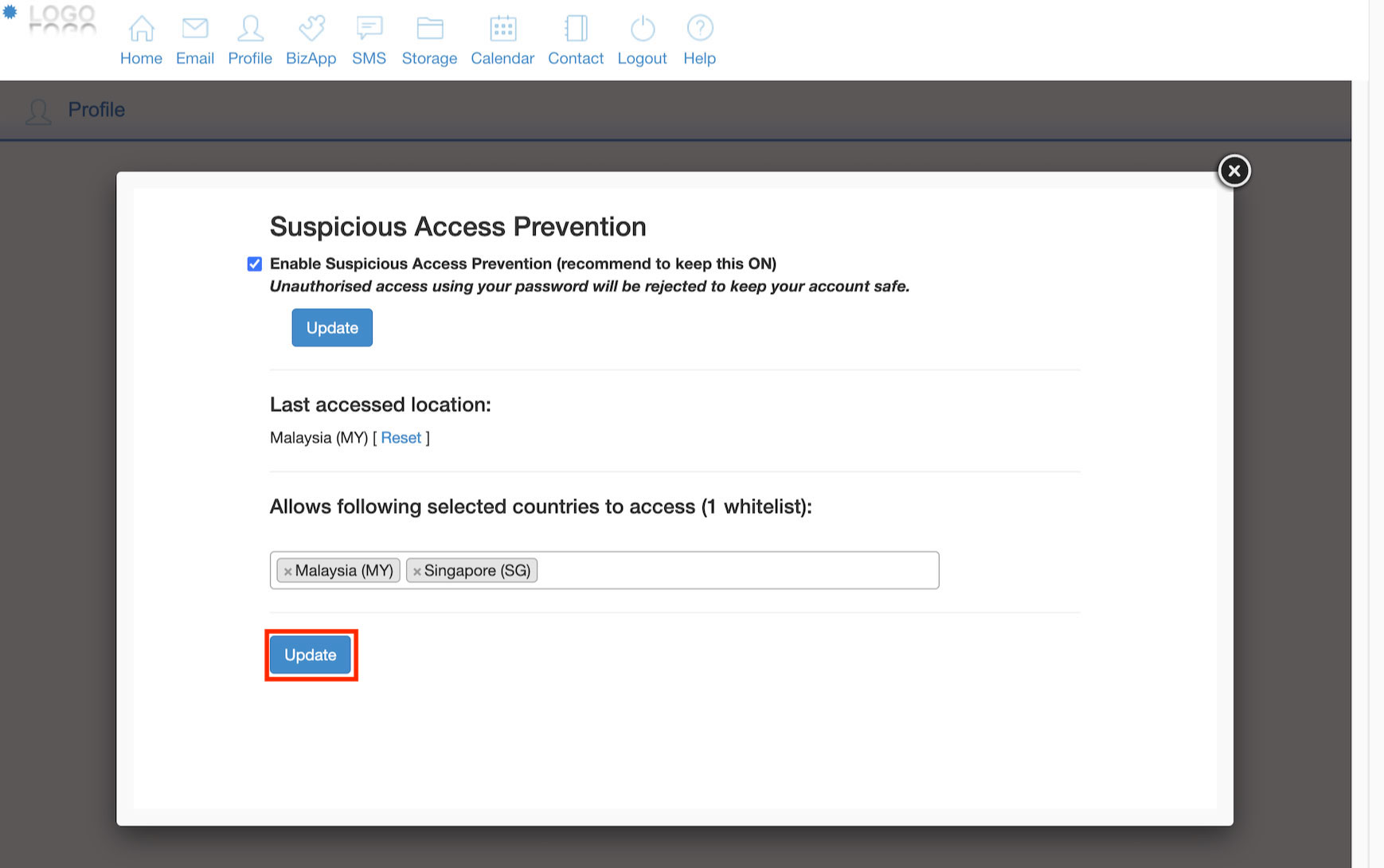2. A “Suspicious Access Prevention” box will be displayed like the below image.