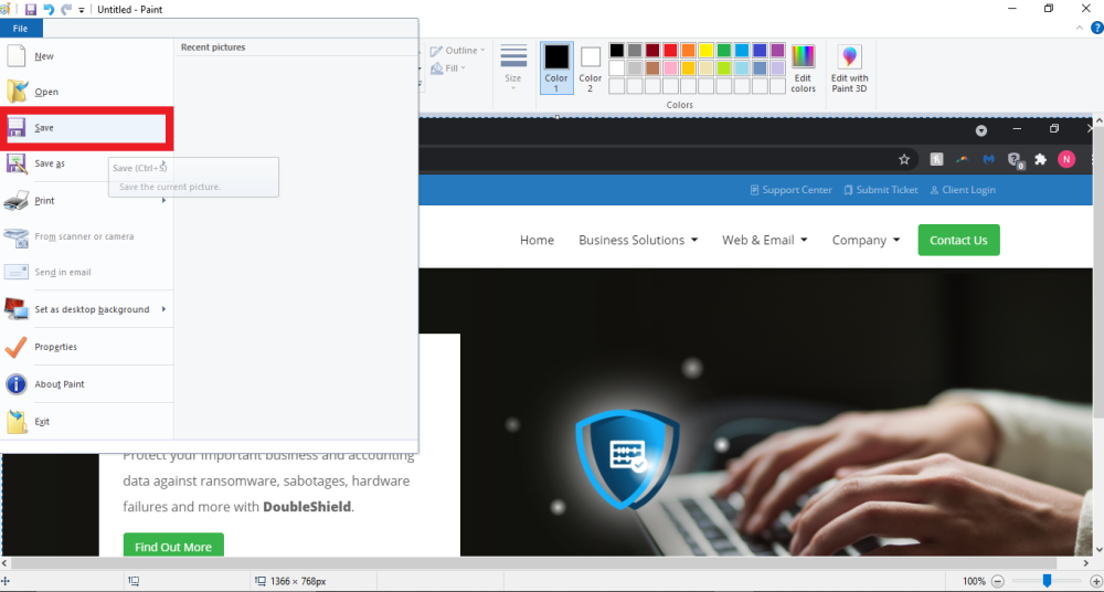 2. Open an image editing tool like Microsoft Paint, and paste the screenshot.