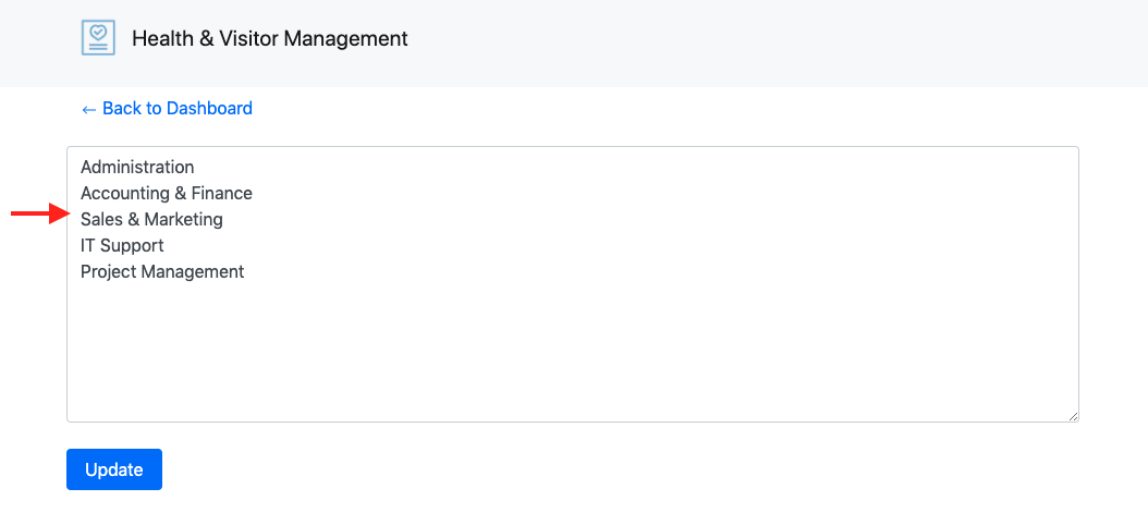 Then, enter the teams or departments into the given box and click [Update] to save them.