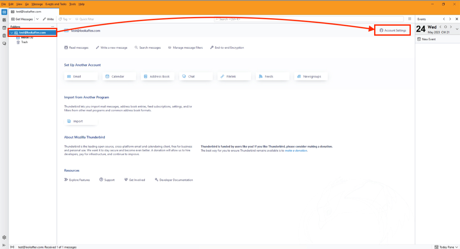 1. On Thunderbird, click your email account on the Folders pane, then click Account Settings.