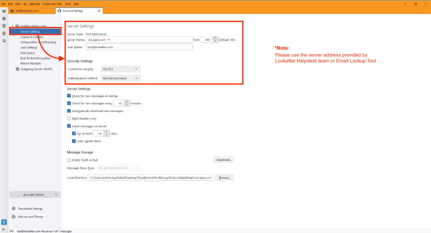 To check if your POP3 setting is correct on your Mozilla Thunderbird, please follow through the following steps: