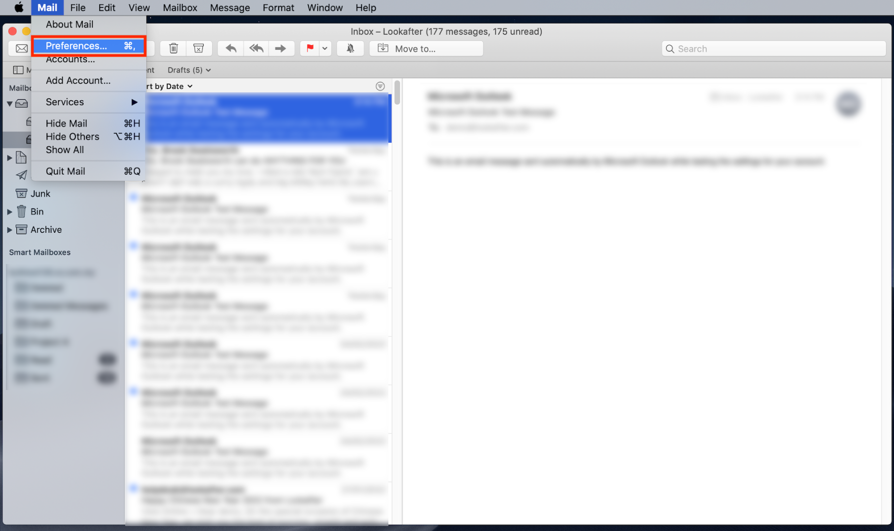 1. On you Mac Mail app, click on Mail and select on Preferences….