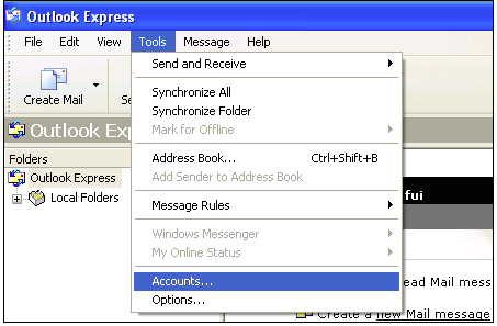 Select “Accounts…” from the “Tools” menu in Outlook Express