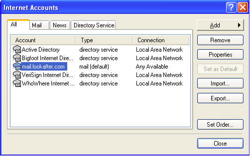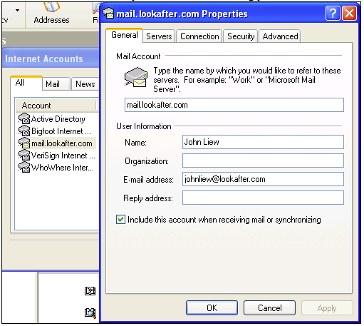 Select your existing mail setting, in this case the “mail.lookafter.com”, click “Properties” to continue: