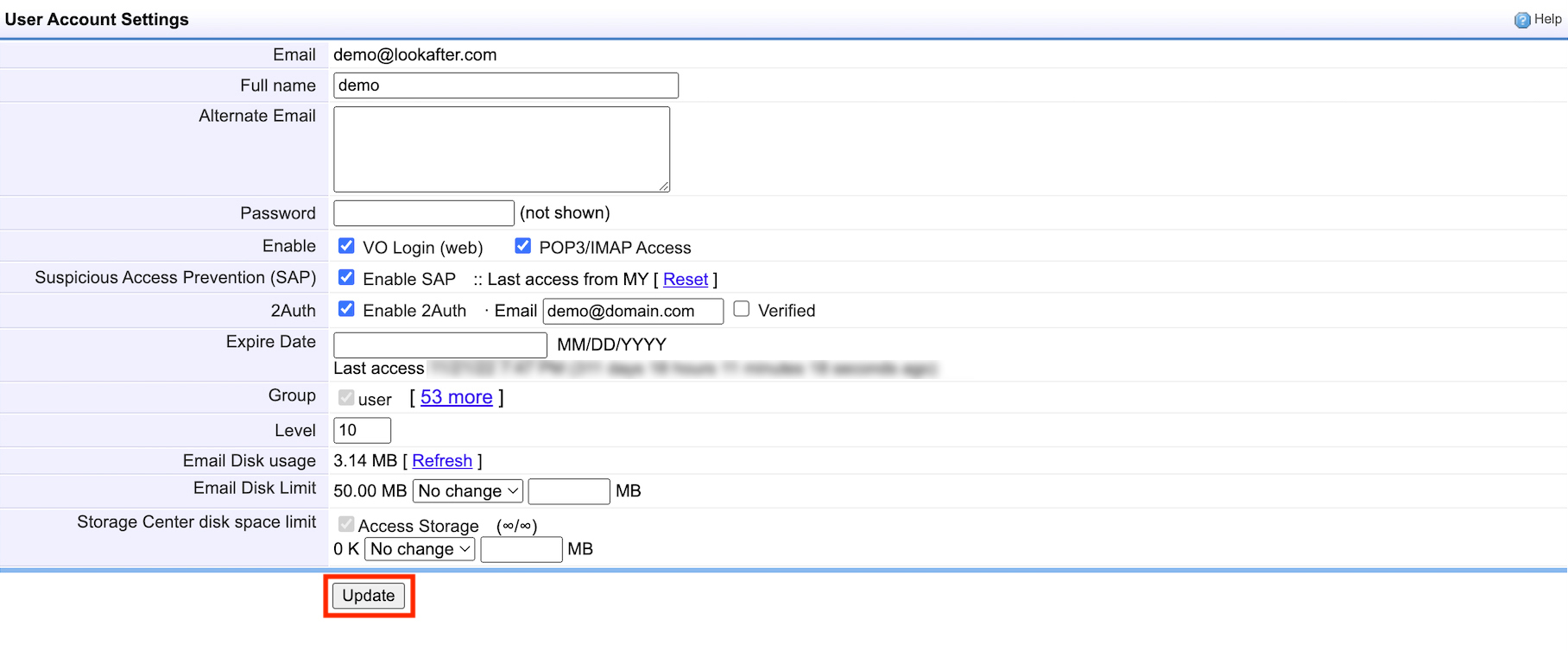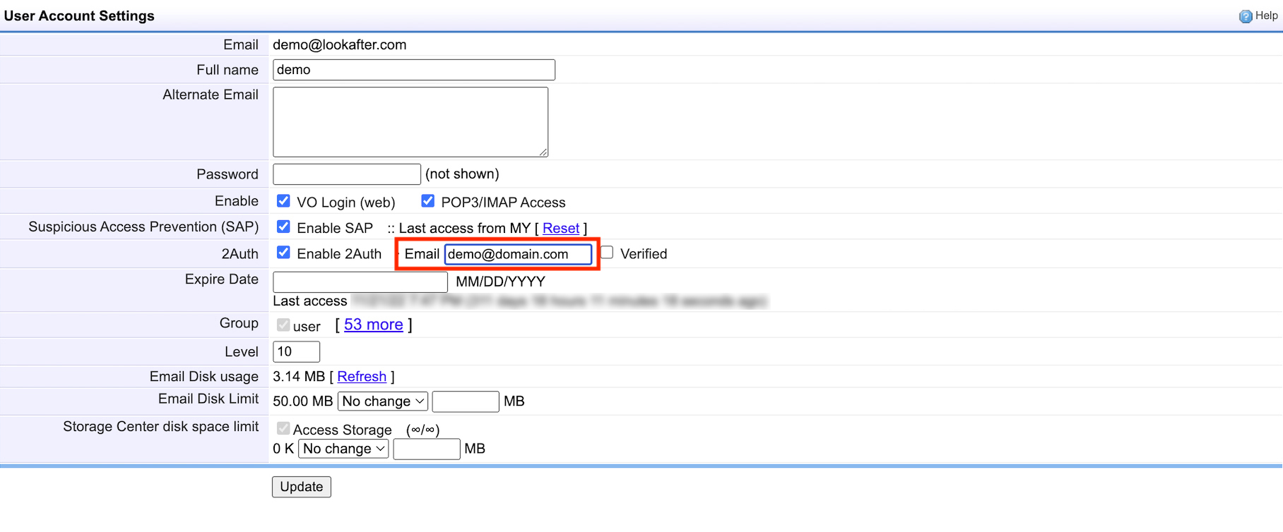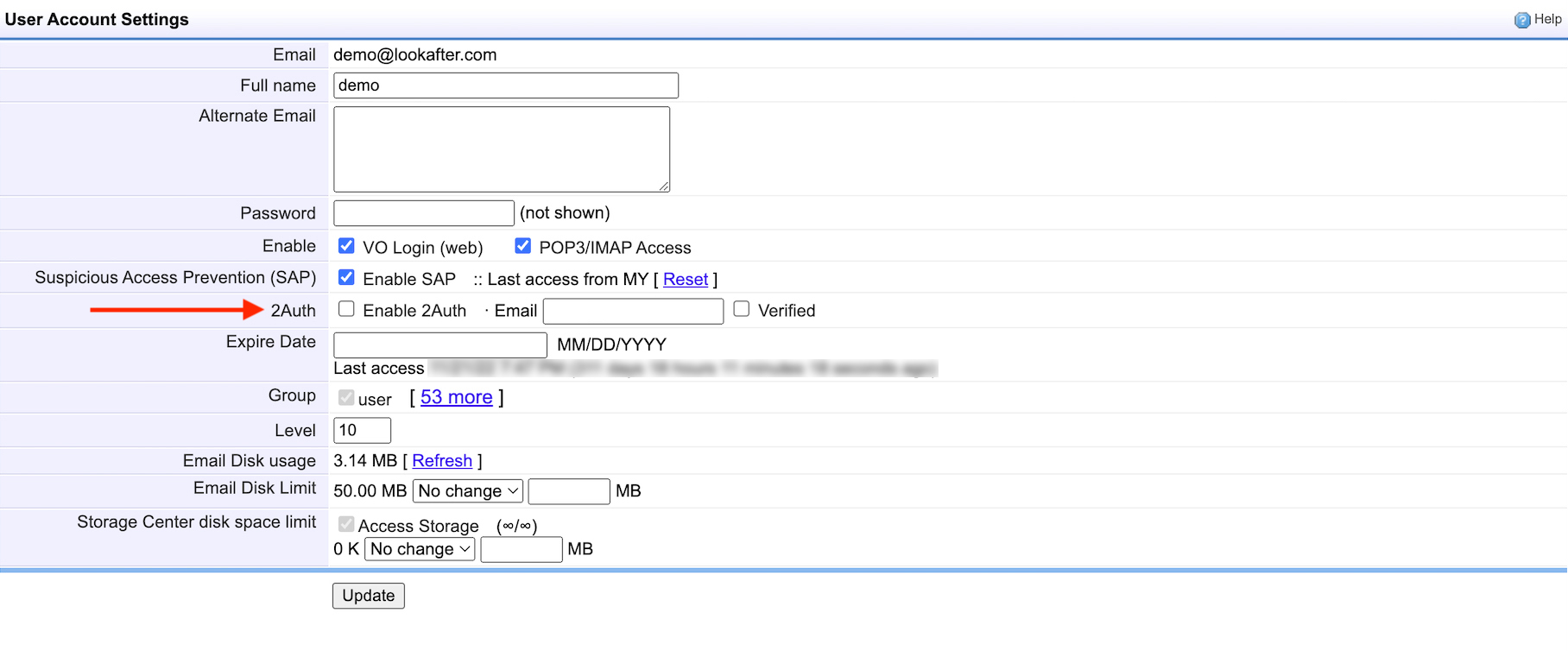 • Temporarily disable 2Auth for the user while ensuring the user's 2Auth Email does not block emails coming from lookafter.com traffic.