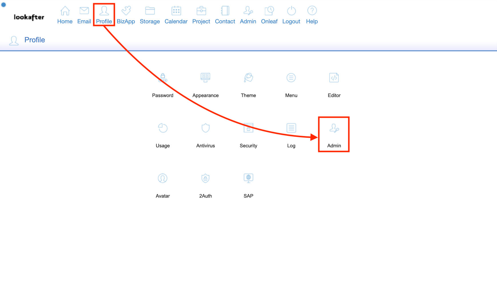 1. Login to the administrator account and go to Profile > Admin.