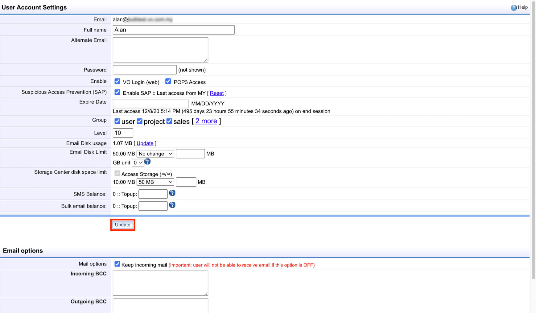Home > FAQ > Admin > Managing User Accounts > How to adjust user storage disk space