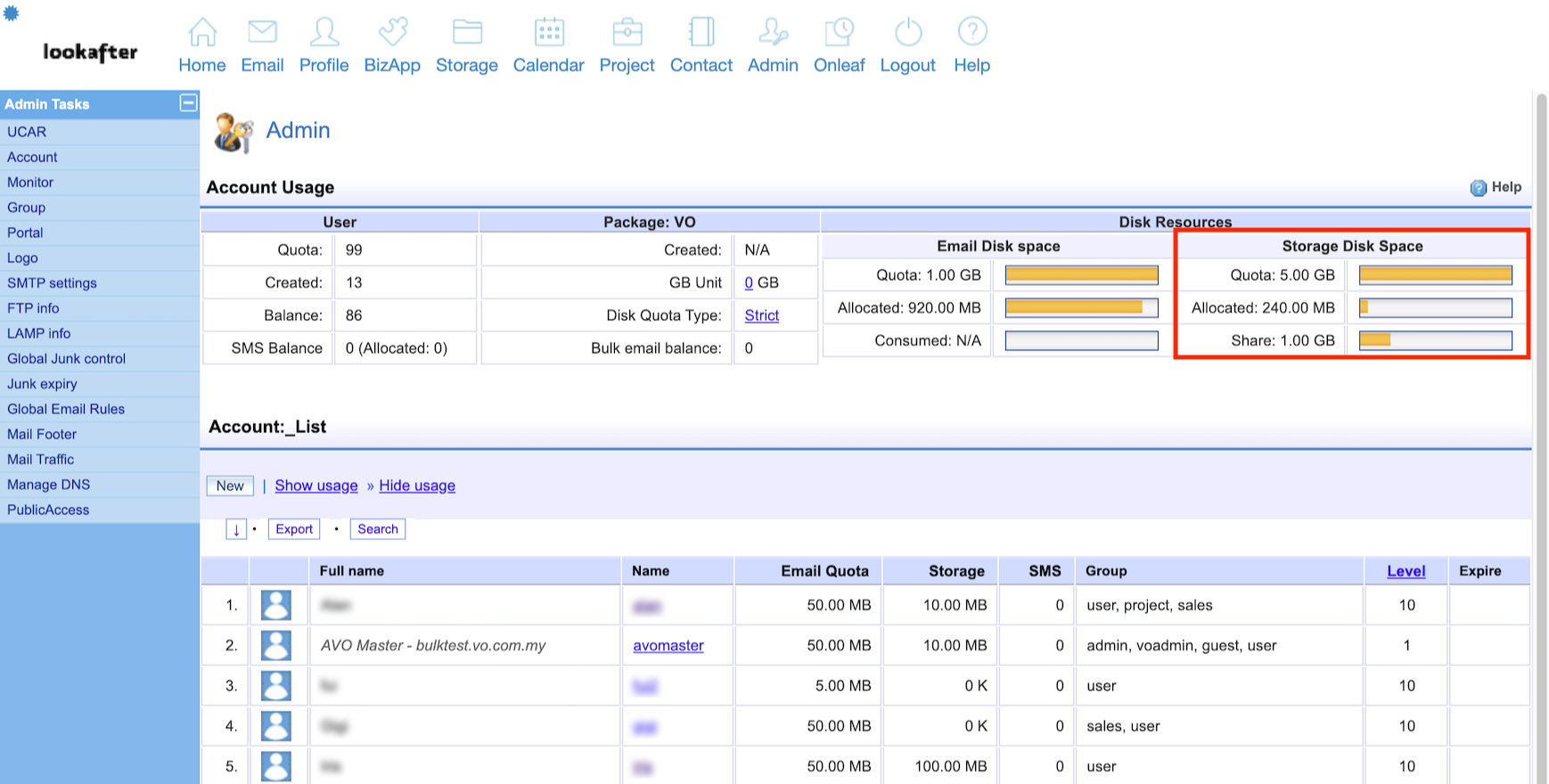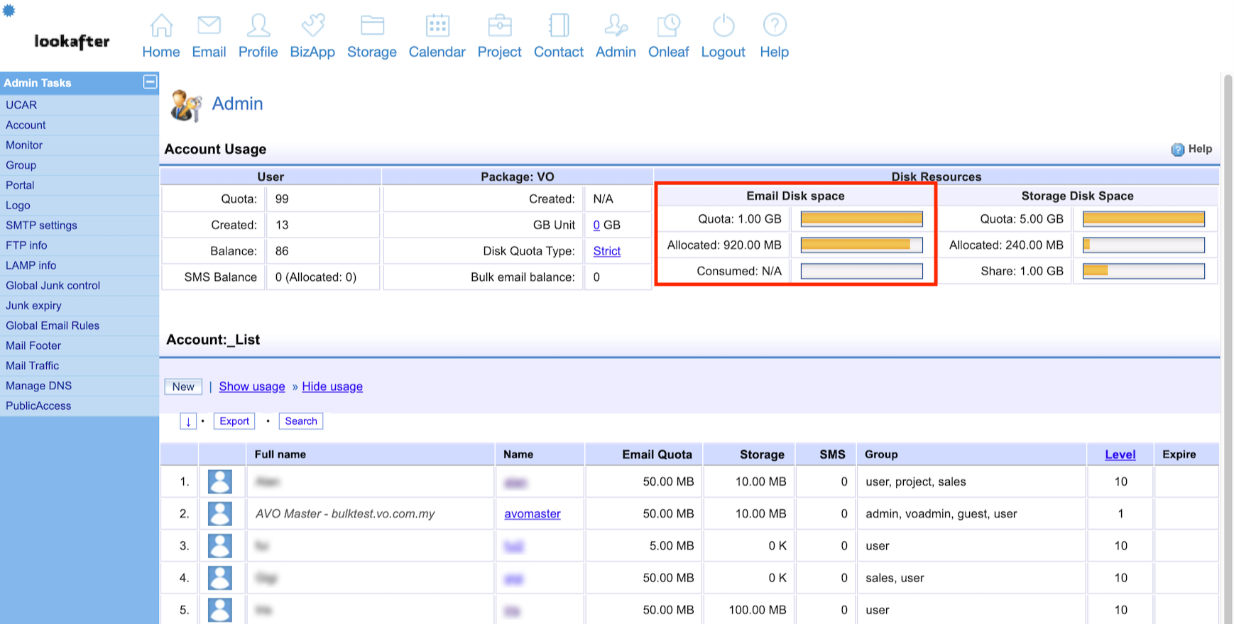 Home > FAQ > Admin > Managing User Accounts > How to view my VO email and storage available space