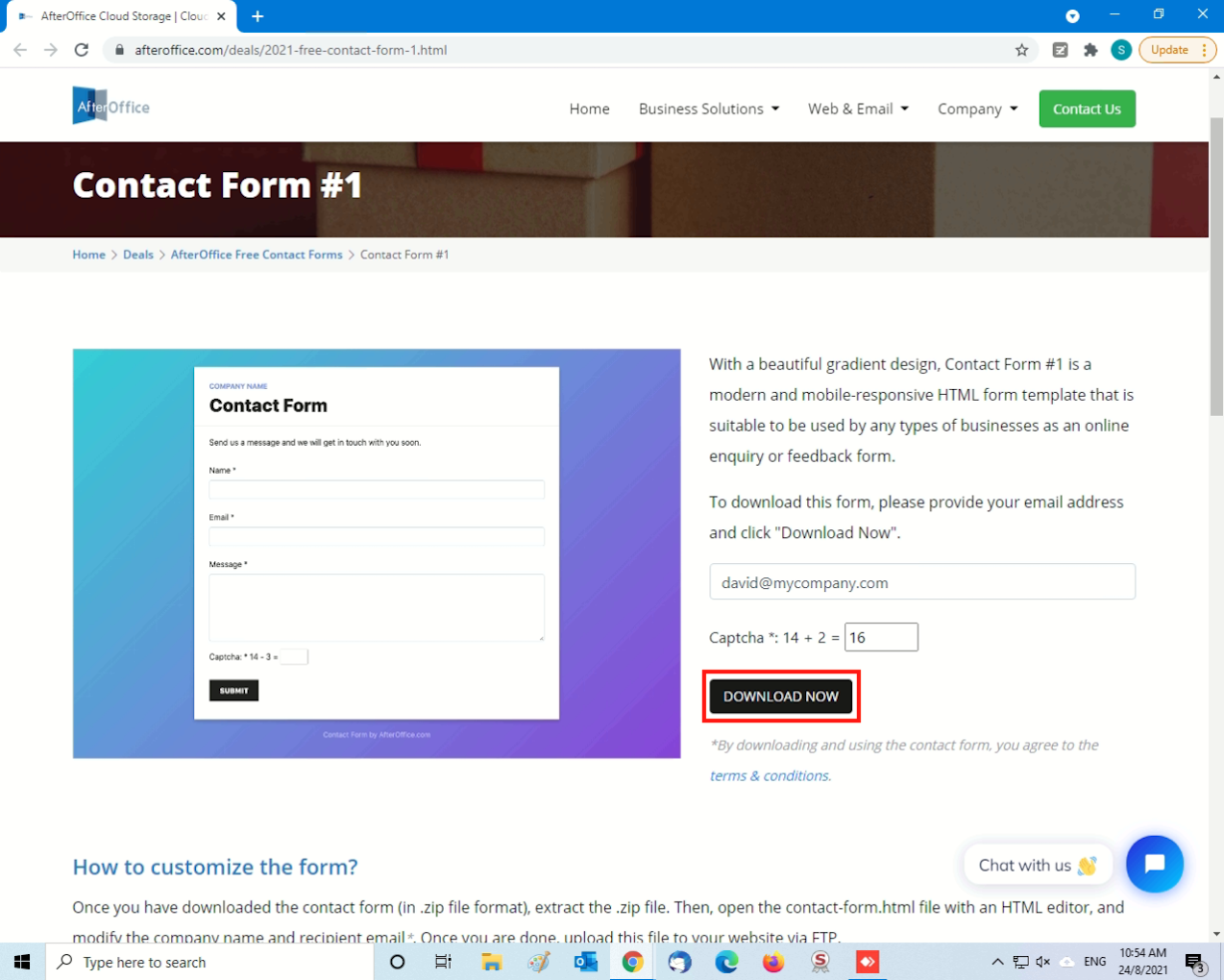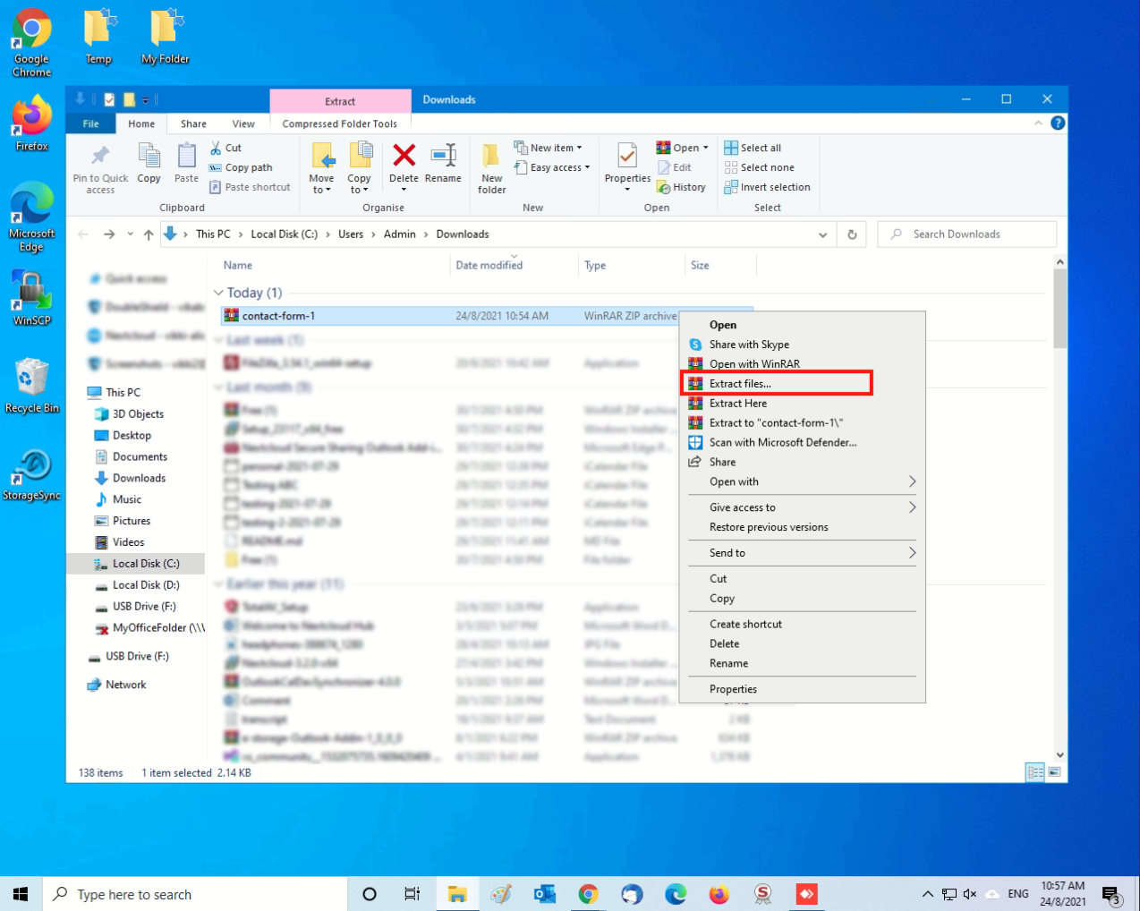 The contact form will be downloaded in .zip file format. Extract this zipped file.