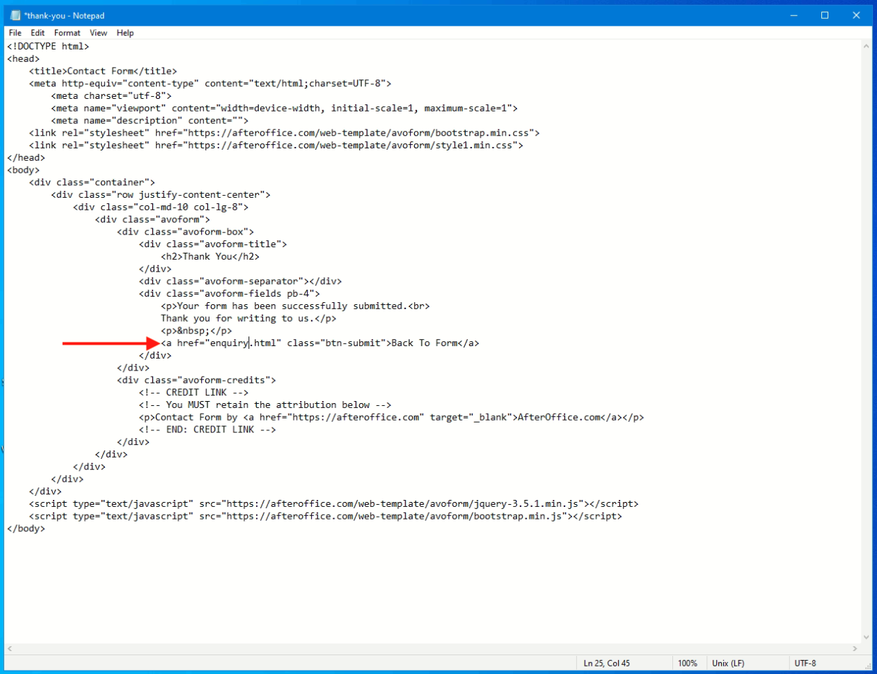 Next, open the thank-you.html file (with a HTML editor or Notepad).