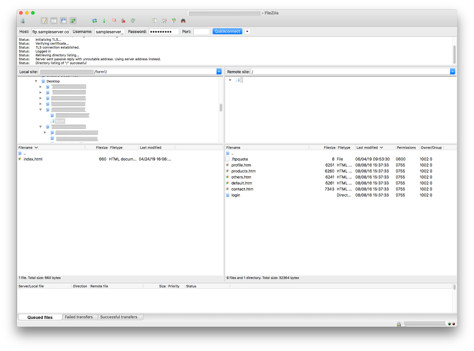 9. To upload a file, simply select it from the left pane (which lists the files and folders in your local PC), drag and drop it to the right pane (which displays contents in your website).