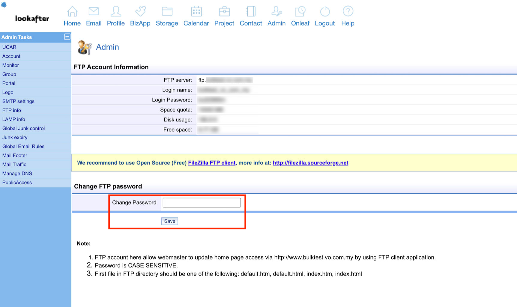 Home > FAQ > Website > FTP & LAMP > How to change FTP password