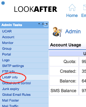 1. Login as the Avomaster or voadmin. Go to Profile → Admin Tasks → LAMP Info.