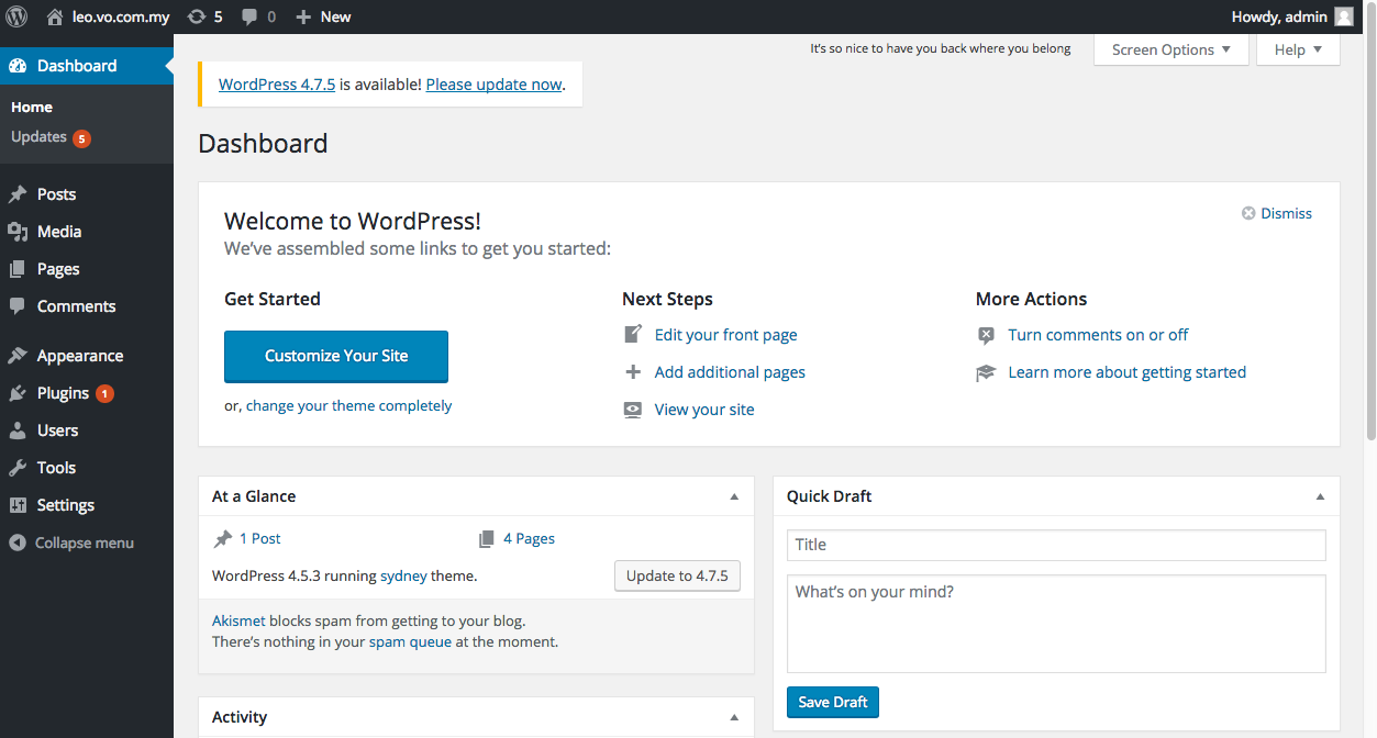14. Once you are logged in, please change the Wordpress admin password. You can then start to design and build your website with Wordpress.