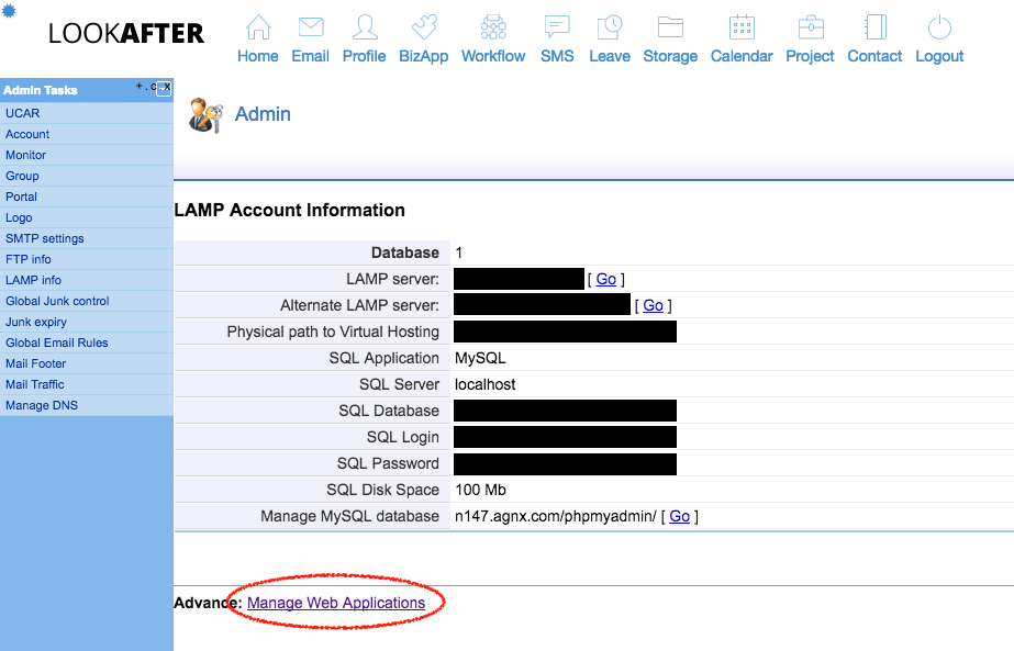 2. On your LAMP Account Information page, click [Manage Web Applications].