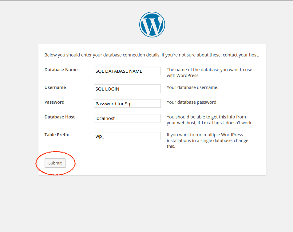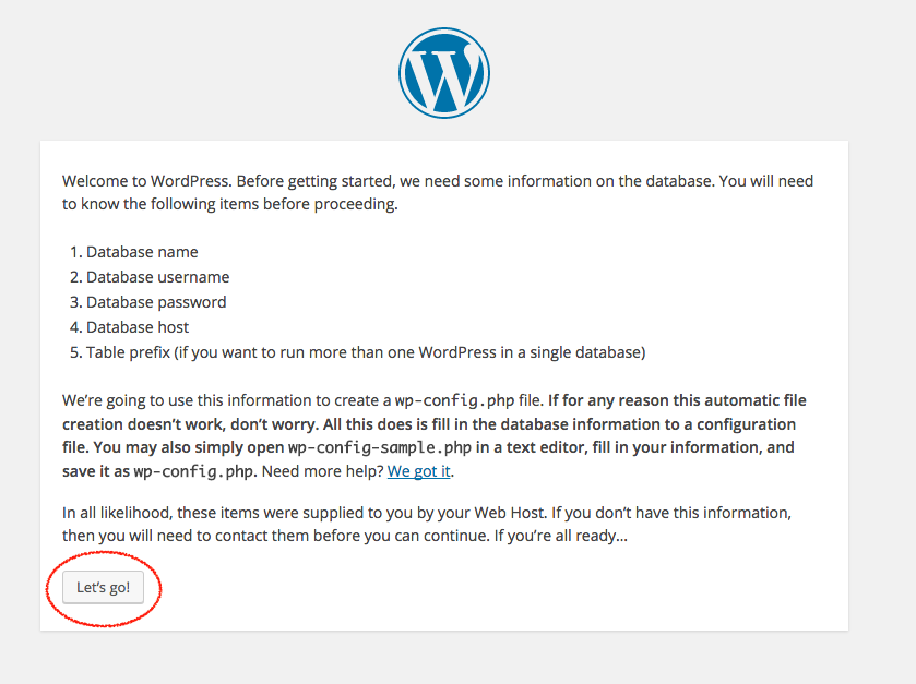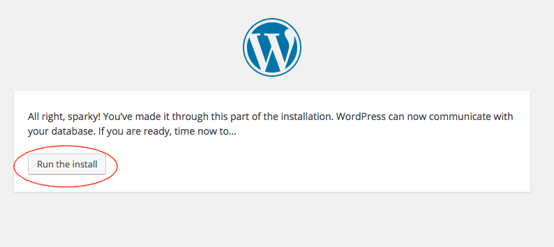 *Please note that if you have installed Wordpress before, you may need to remove the database tables manually before proceeding to the next step.