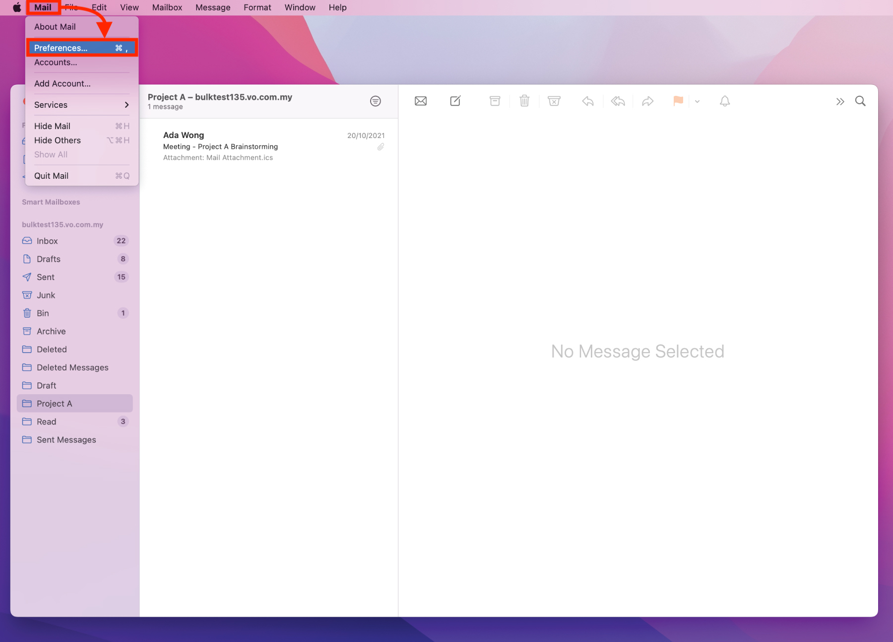 1. Open Mail. On the top menu, select Mail > Preferences….