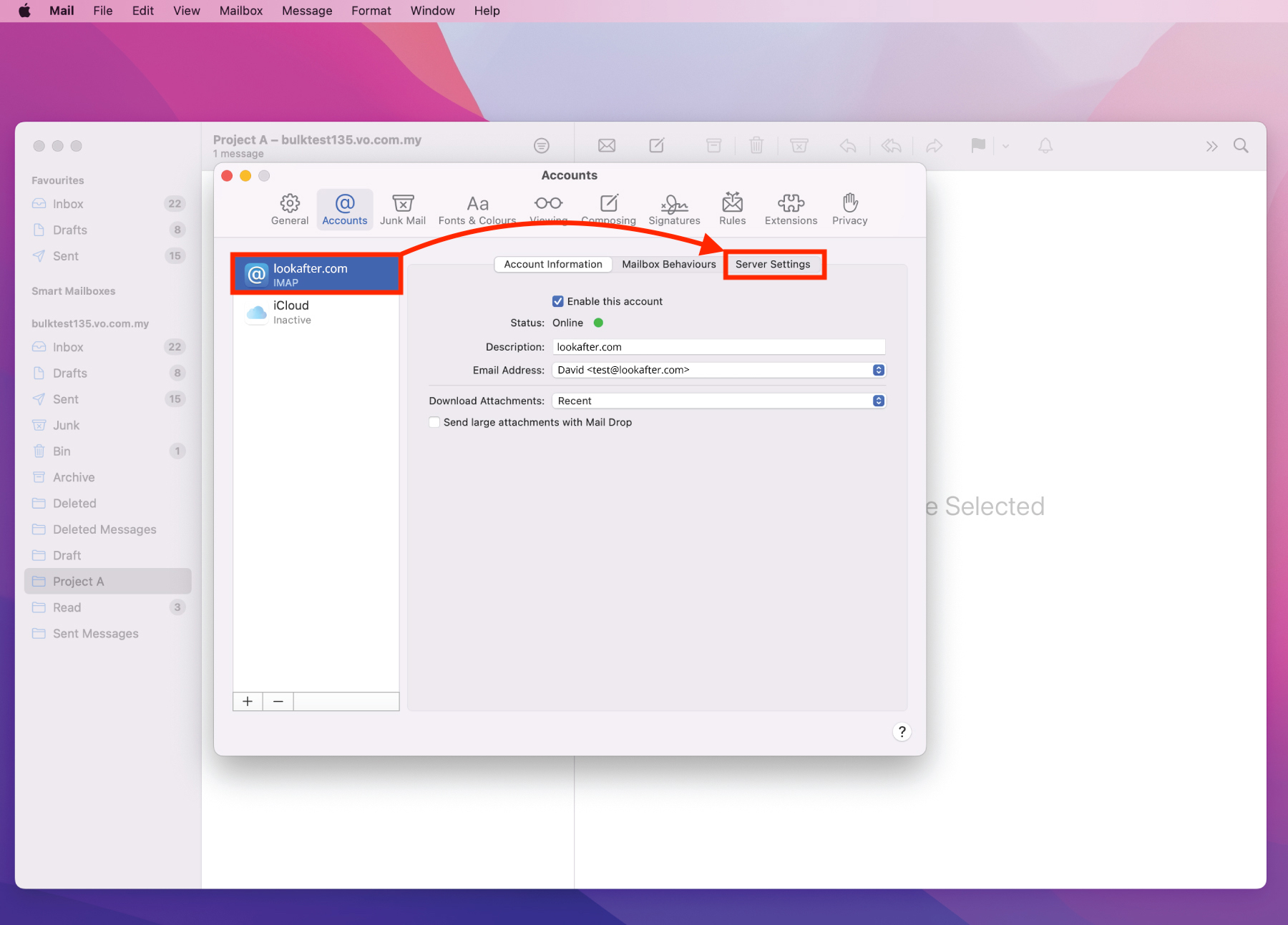 If you are using Apple Mail on your Macbook and wanted to access the mail server settings, follow the steps below.