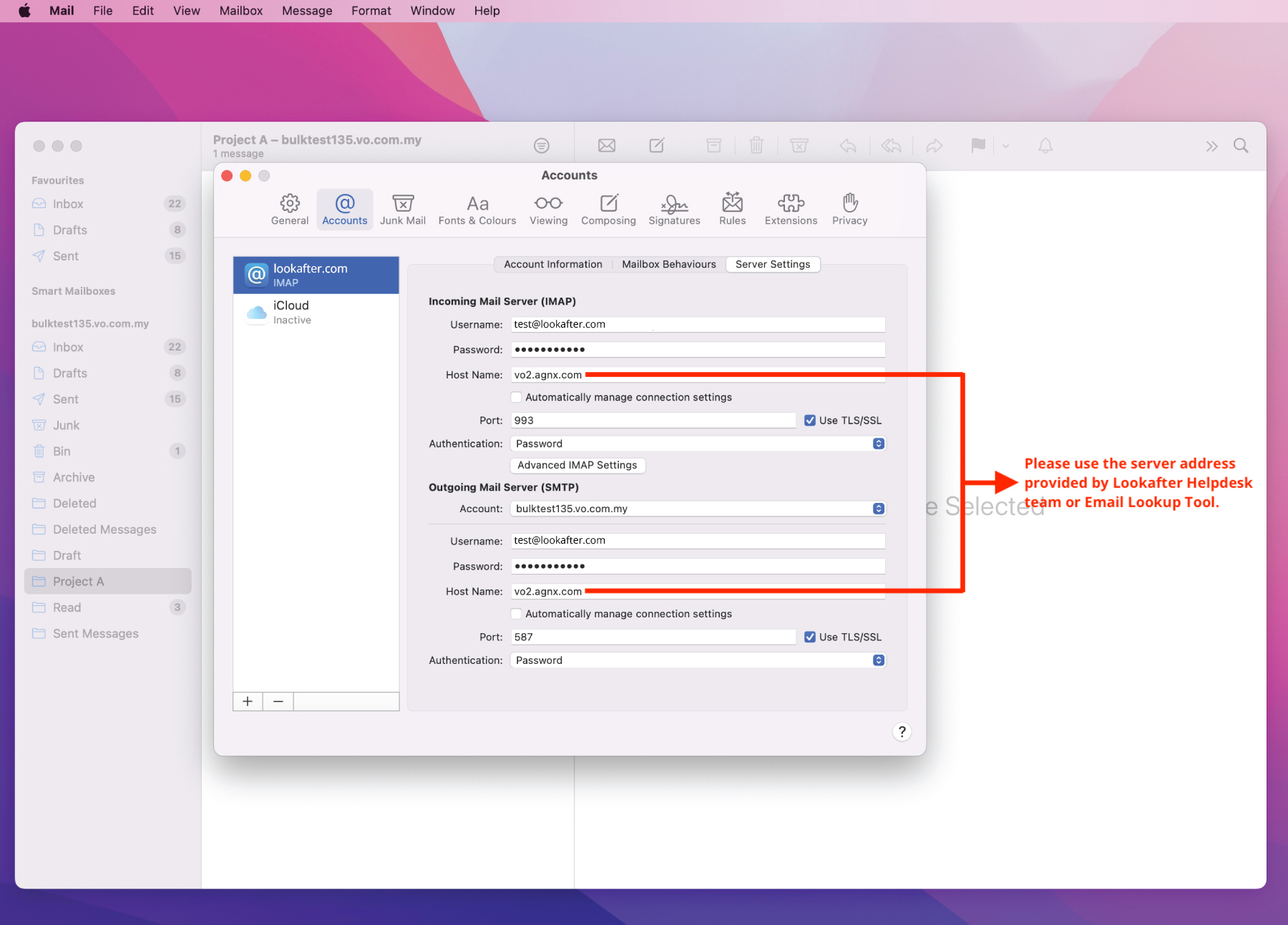 NOTE: To confirm which server to be used for your domain, please use the Email Lookup Tool or consult Lookafter Helpdesk.