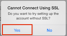 “Cannot Connect Using SSL - Do you want to try setting up the account without SSL?”. Select