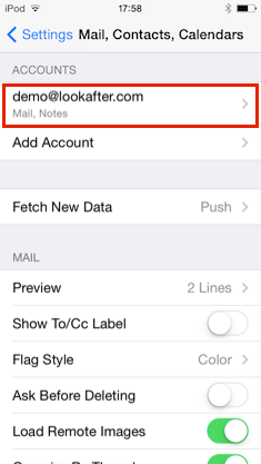 Settings > Mail, Contacts, Calendars and select your email account.