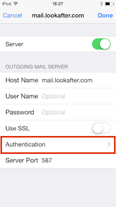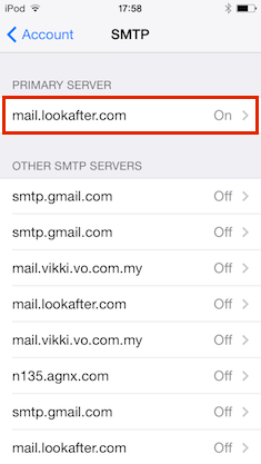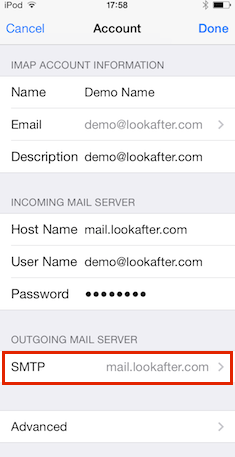 Outgoing Mail Server, tap into the SMTP settings.