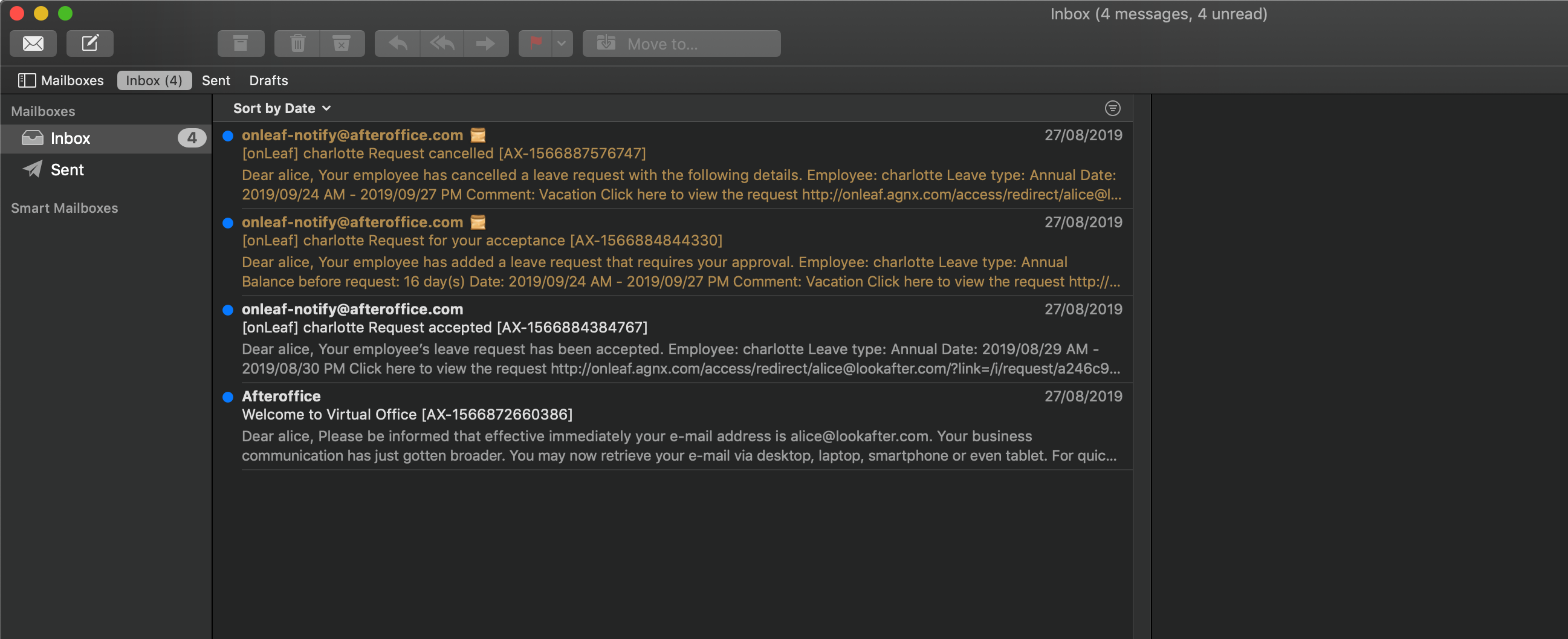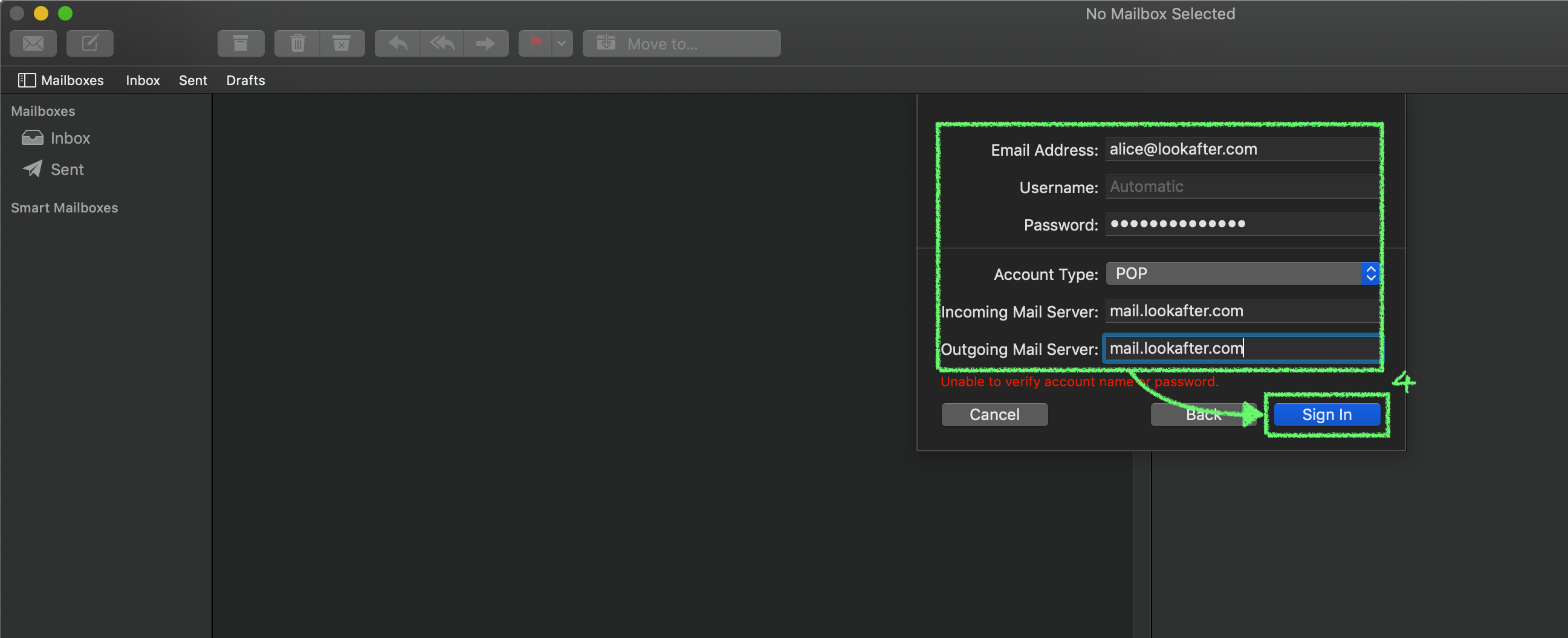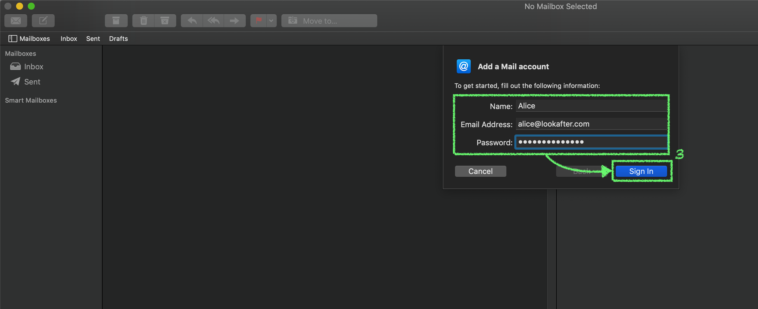 To setup an IMAP email account on your Mac Mail, please follow the steps below. We are using alice@lookafter.com as an example in this guide.
