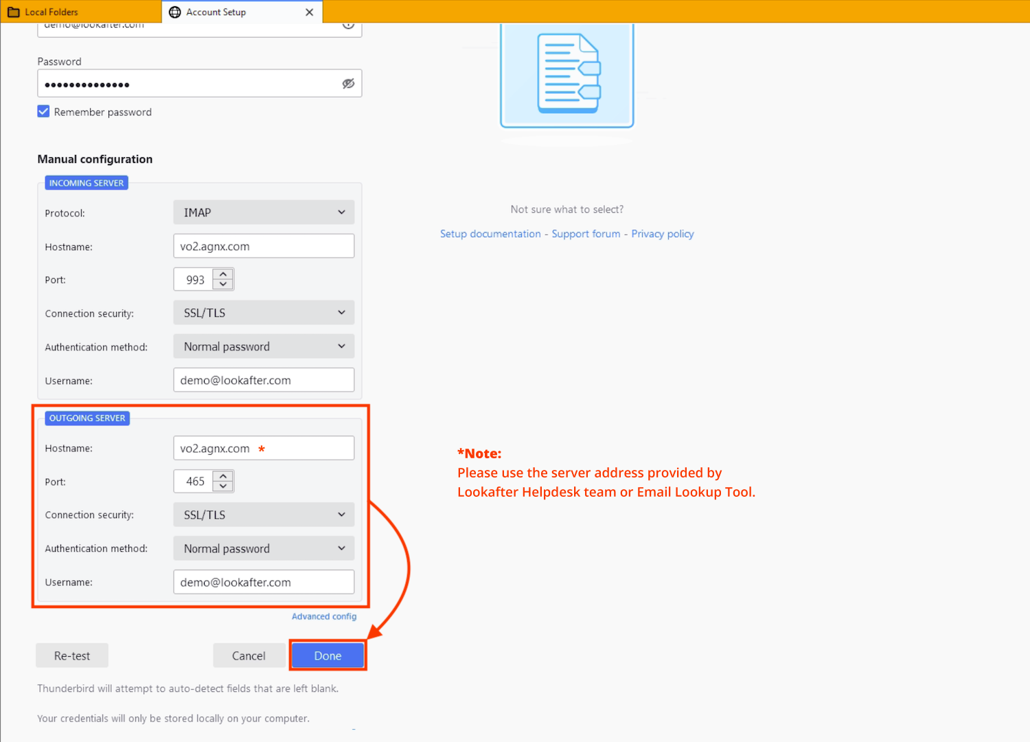 IMPORTANT: Please consult Lookafter Helpdesk to confirm which server to be used for your domain.