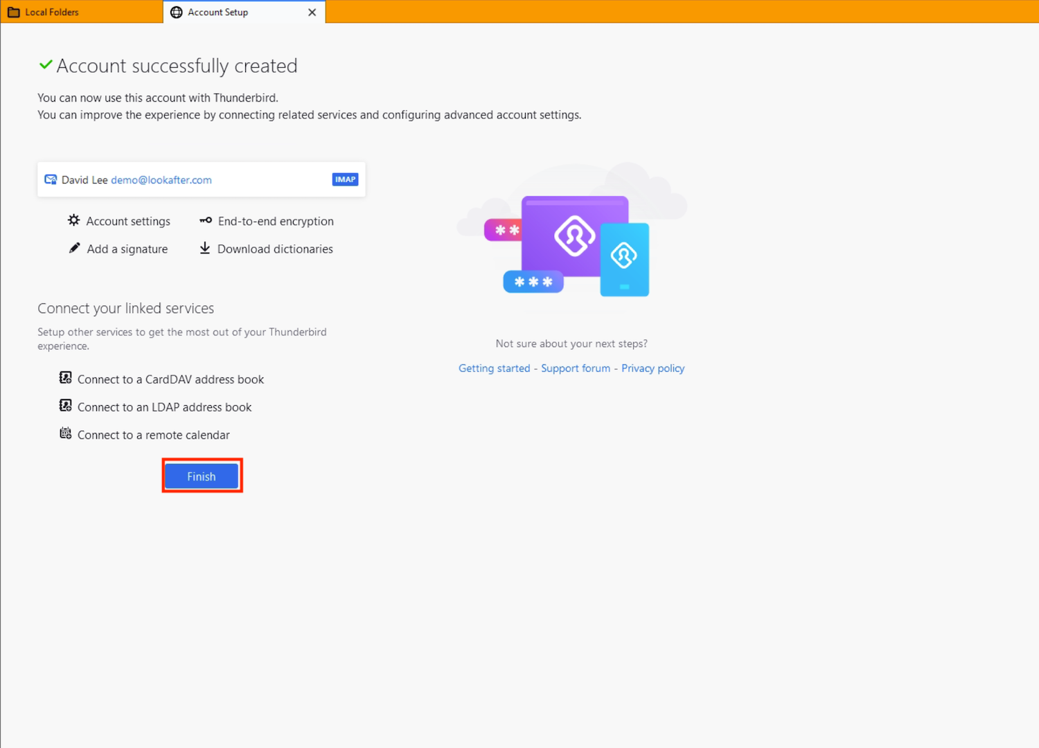5. Your account has been successfully added. Click Finish to exit the setup process.