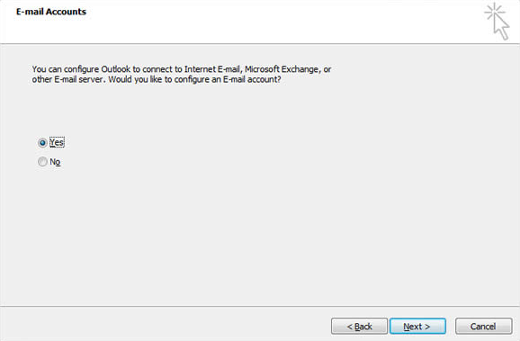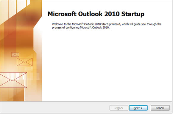 2. The following startup wizard is displayed if you are running MS Outlook 2010 for the first time.