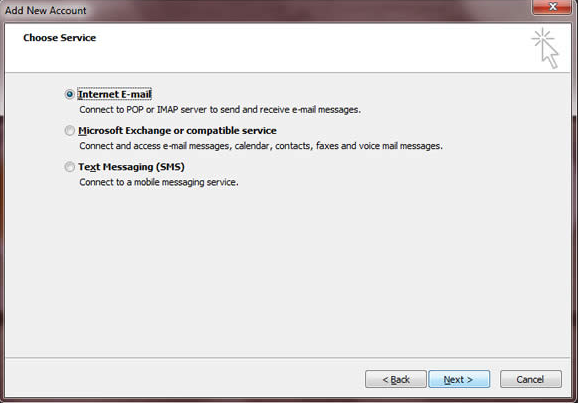 4. Choose the option “Internet E-mail”. Click “Next” to proceed.